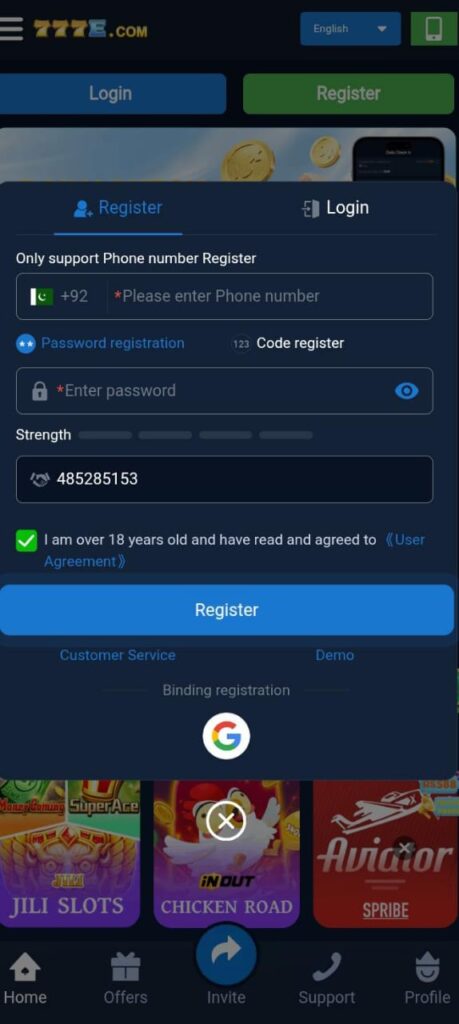 How to Register & Login the 777E APK Game?