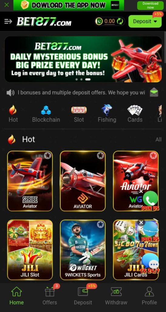 The game is typically played on smartphones and offers features like daily bonuses, referral rewards, and promotional offers to keep users engaged. Its simple interface allows beginners to start playing without much effort or prior experience. However, Bet877 is largely based on luck rather than skill. There is no guaranteed way to win consistently, and players can lose money quickly. Because of this, it should be approached with caution and treated mainly as a form of entertainment rather than a dependable source of income.