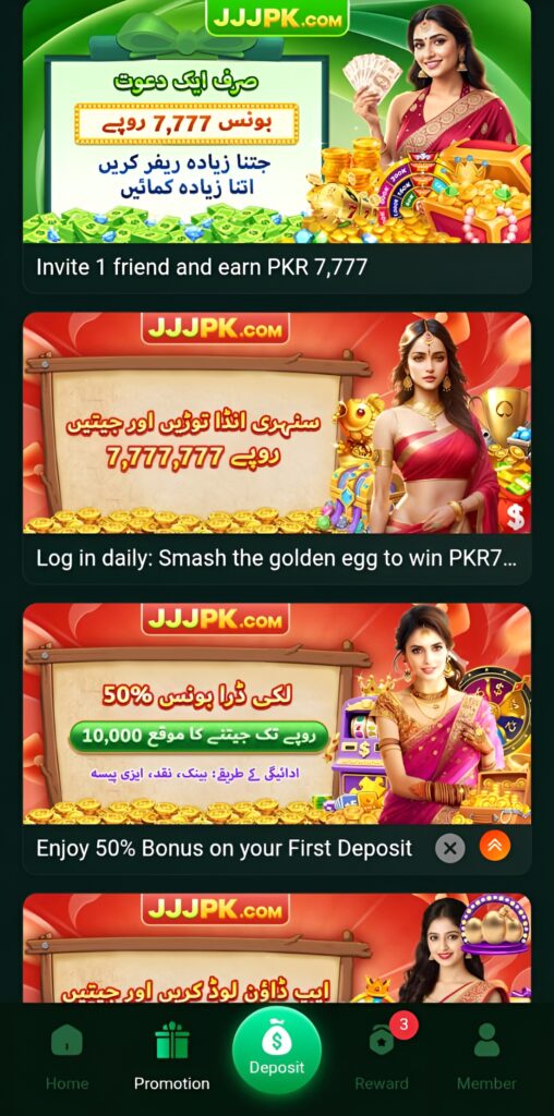 JJJPK Game is mostly free to download and explore, but it is not completely free to play all features. You can download the app from the official website without paying anything. Some games allow free or demo mode so players can try them without spending real money. This is useful for beginners who want to understand how the games work. However, to place real bets and win real rewards, you need to deposit money into your account. Many features, like daily bonuses, special promotions, or certain high-reward games, also require real money. This means while you can enjoy parts of the game for free, full access usually comes with financial involvement.