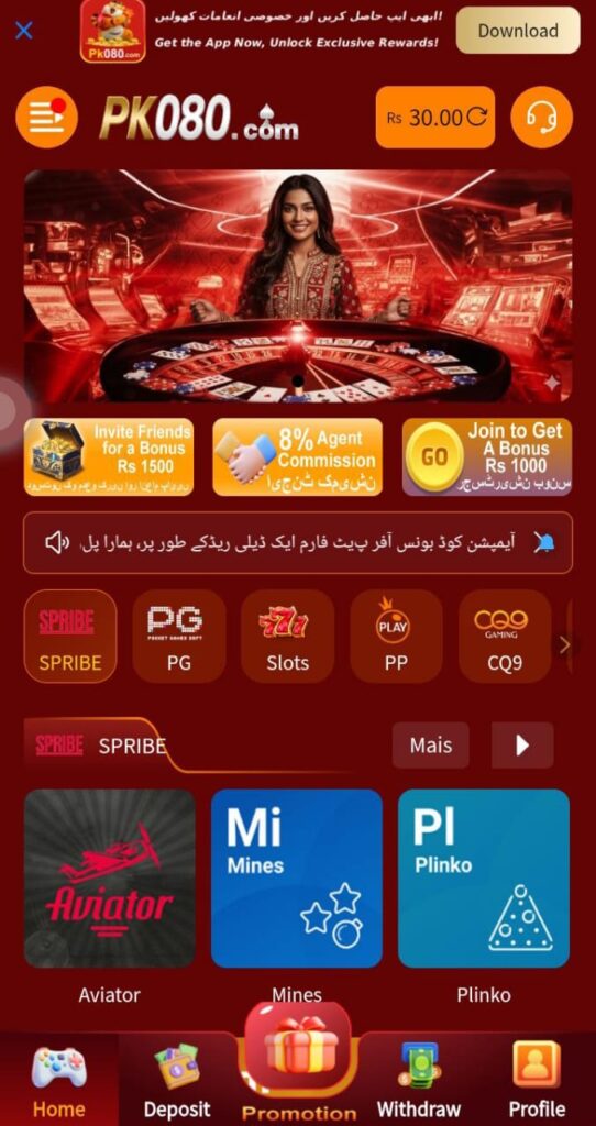 PK080 also offers bonuses, referral rewards, daily login incentives, and promotions to increase engagement and reward active players. Deposits and withdrawals are made convenient through local Pakistani payment systems such as JazzCash, EasyPaisa, and bank transfers. However, it’s important to note that PK080 is not officially regulated, and the games are mostly based on luck rather than skill, which means financial risk is involved. Users must be cautious, as there is potential for scams or loss of money.