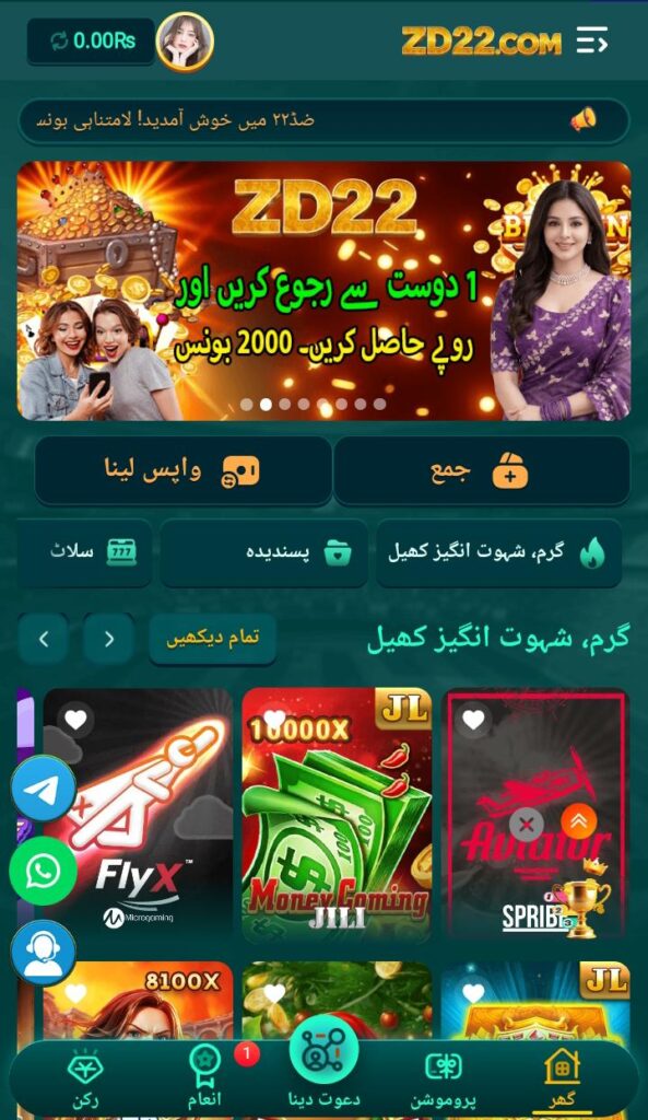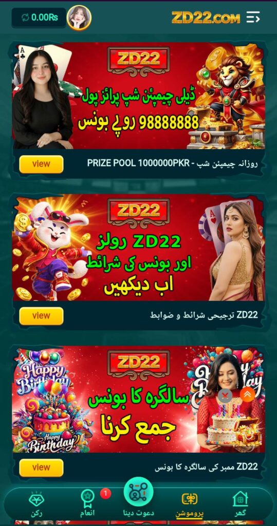 Of course, the ZD22 Game is a mobile gambling app that has gained popularity due to its variety of card and casino-style games, including Teen Patti, Poker, Rummy, Andar Bahar, slots, and mini prediction games. It allows users to deposit real money through local payment methods like Easypaisa, JazzCash, or bank transfers and offers rewards such as daily bonuses, referral incentives, and leaderboards. Its colorful, user-friendly interface and multiplayer gameplay make it engaging for many players looking for entertainment and potential earnings.
